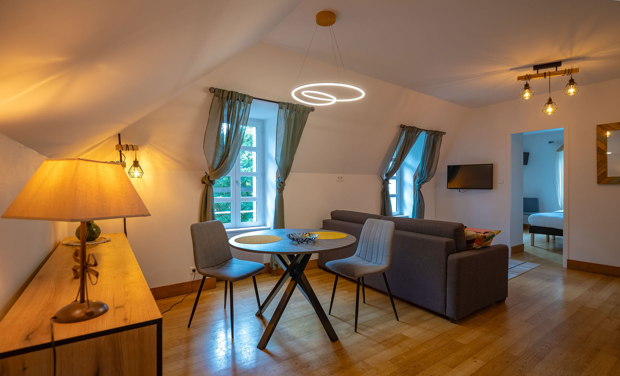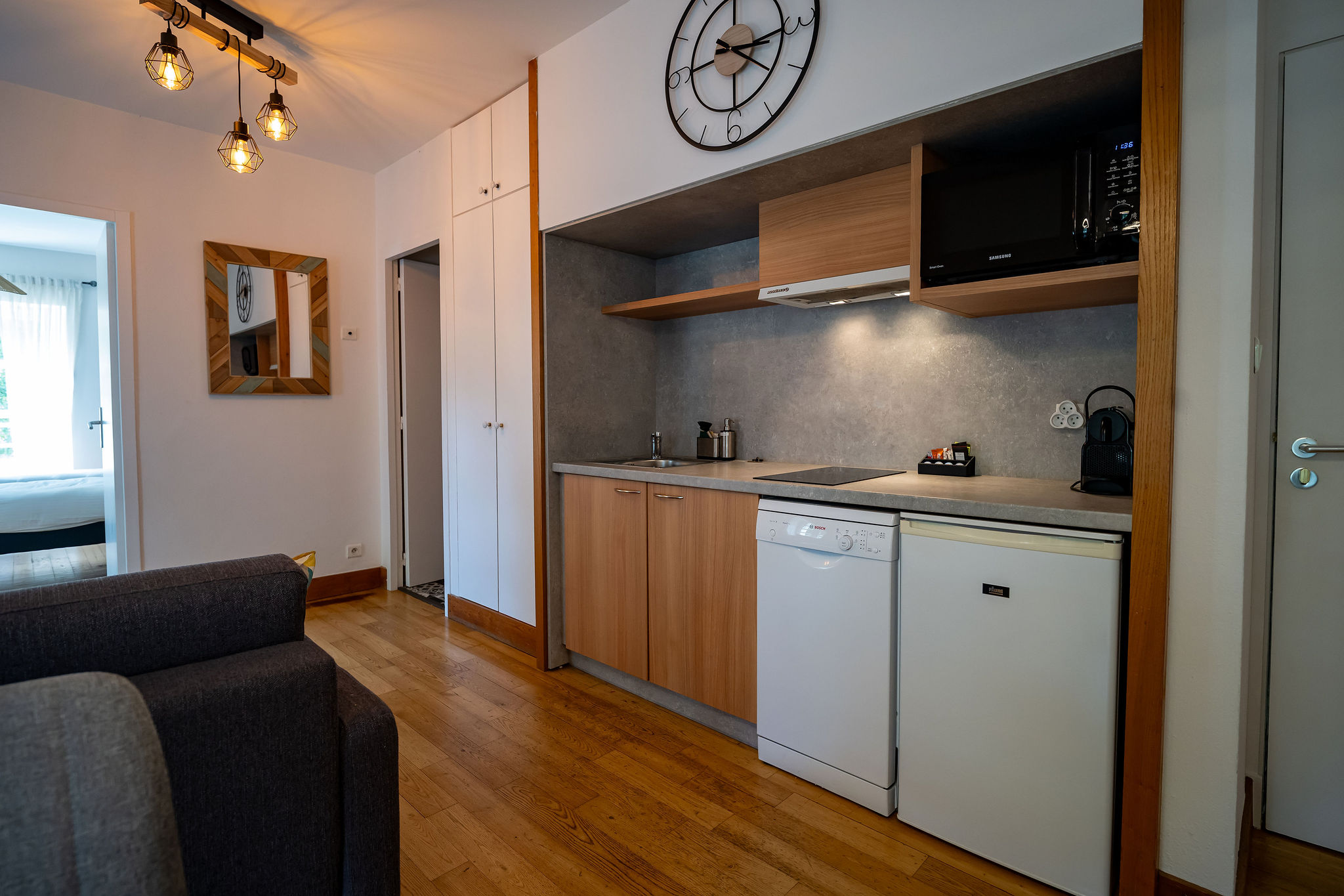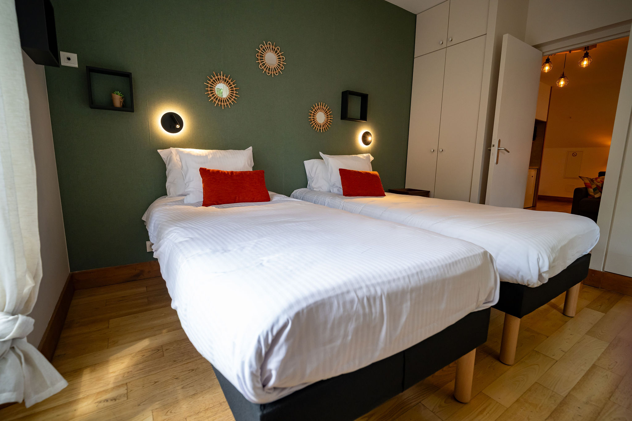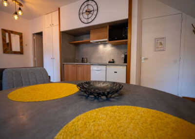 Nous disposons de sept appartements, chacun conçu pour offrir un confort optimal à deux personnes. Ces appartements allient fonctionnalité et esthétique, avec une touche de modernité, garantissant un séjour des plus agréables.