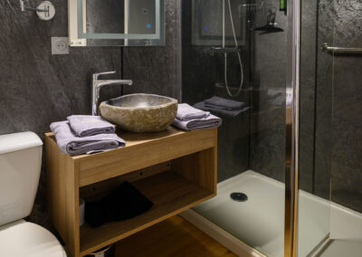 Le ruisselement de l’eau, les quelques chevaux ou vaches des alentours, sont l’unique perturbation du silence ambiant dans notre spa thermal, un écrin de bien-être fait de roche et de végétal.